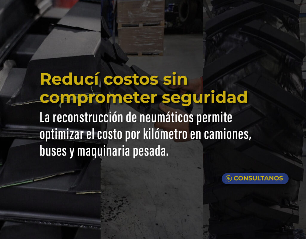Las diferencias entre un neumático nuevo y uno recapado son imperceptibles. Al renovar la banda de rodamiento se puede alargar la vida útil del neumático, ahorrando hasta un 40% del costo total de las operaciones.